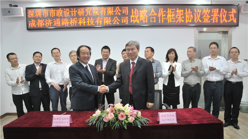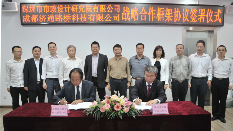 2017年4月24日下午,我公司與成都濟通路橋科技有限公司(以下簡稱“濟通科技”)戰(zhàn)略合作框架簽署儀式在公司一樓技術(shù)交流中心舉行,董事長陳宜言設(shè)計大師和濟通科技伍廷貴董事長代表雙方簽字。蔡明總經(jīng)理、宋榮亮主席、郭明副書記、王建新副總經(jīng)理、張健君副總經(jīng)理、許華林副總經(jīng)理、徐波總工程師以及相關(guān)部門負責人和專業(yè)總工,濟通科技伍大成總經(jīng)理、趙鵬賢副總經(jīng)理,鄒貽軍技術(shù)總監(jiān)、技術(shù)部高建主任出席簽署儀式。儀式由我公司黨委副書記、紀委書記、工會主席郭明主持。