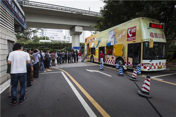 公司員工參觀體驗(yàn)消防宣傳車