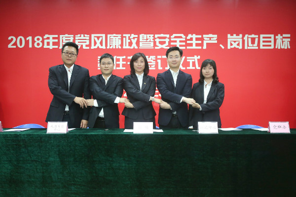 “千斤重?fù)?dān)眾人挑,人人肩上有指標(biāo)”,2018年黨風(fēng)廉政暨安全生產(chǎn)、崗位目標(biāo)責(zé)任書的簽訂,標(biāo)志著新一年各項(xiàng)工作全面分解落實(shí),希望大家不忘初心,在新時代新使命的召喚下,在新思想的引領(lǐng)下,堅(jiān)韌不拔,鍥而不舍,腳踏實(shí)地,確保2018年度各項(xiàng)目標(biāo)圓滿完成,公司發(fā)展更上一個臺階。