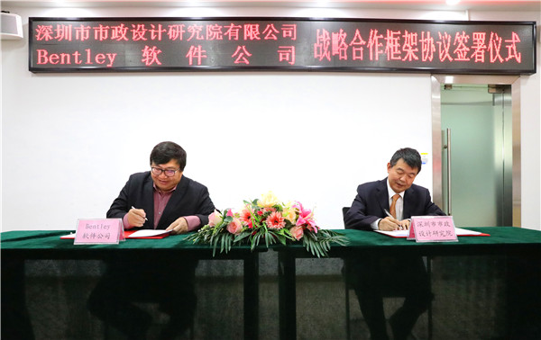 2018年4月24日上午,公司與BENTLEY軟件(北京)有限公司(以下簡(jiǎn)稱“BENTLEY公司”)戰(zhàn)略合作框架協(xié)議簽署儀式在市政設(shè)計(jì)大廈一樓技術(shù)交流中心舉行。公司總經(jīng)理蔡明、副總經(jīng)理許華林以及相關(guān)部門負(fù)責(zé)人,BENTLEY公司北亞區(qū)總裁劉德盛、技術(shù)總監(jiān)李翔等領(lǐng)導(dǎo)與嘉賓參加了簽署儀式。公司總經(jīng)理蔡明與BENTLEY公司北亞區(qū)總裁劉德盛分別代表雙方在戰(zhàn)略合作框架協(xié)議上簽字。