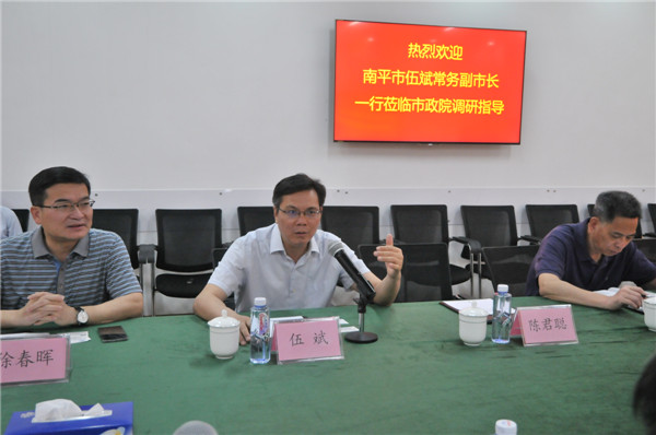 2018年4月27日上午,南平市常務副市長伍斌一行蒞臨我公司調(diào)研指導,公司總經(jīng)理蔡明、副總經(jīng)理張健君以及公司相關部門負責人參加座談。