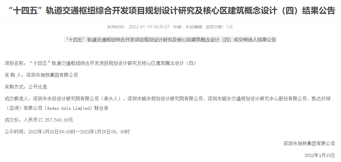 日前,經(jīng)深圳市地鐵集團(tuán)有限公司官網(wǎng)中標(biāo)公示通過,深圳市政院軌道交通院作為聯(lián)合體牽頭方參投的“‘十四五’軌道交通樞紐綜合開發(fā)項(xiàng)目規(guī)劃設(shè)計(jì)研究及核心區(qū)建筑概念設(shè)計(jì)(四)”喜獲中標(biāo),中標(biāo)金額...